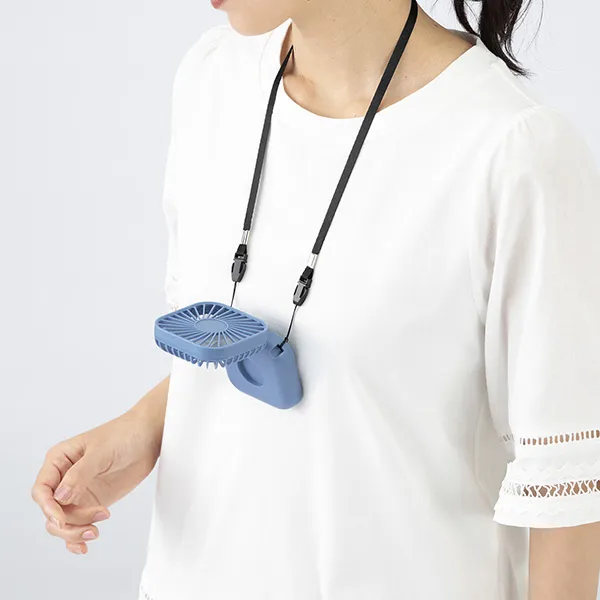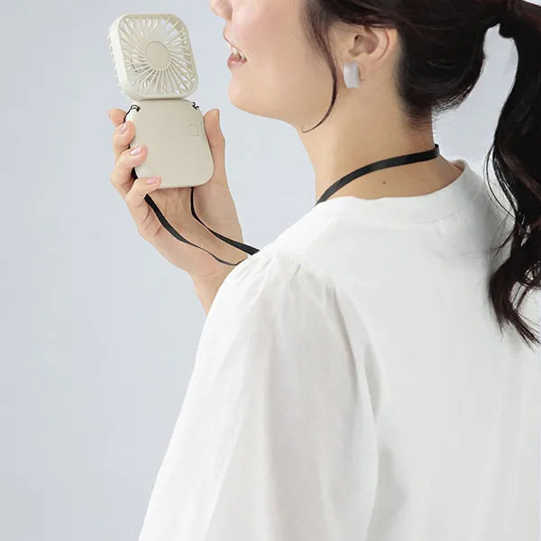 USB充電式。首掛け・手持ち・卓上の3WAY!軽量なので夏の外出やデスクワークに最適です。