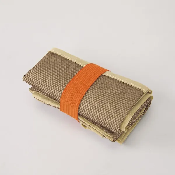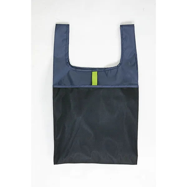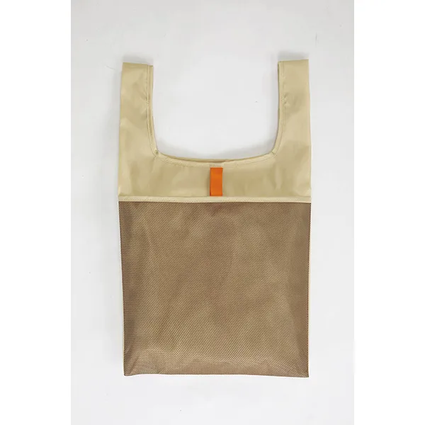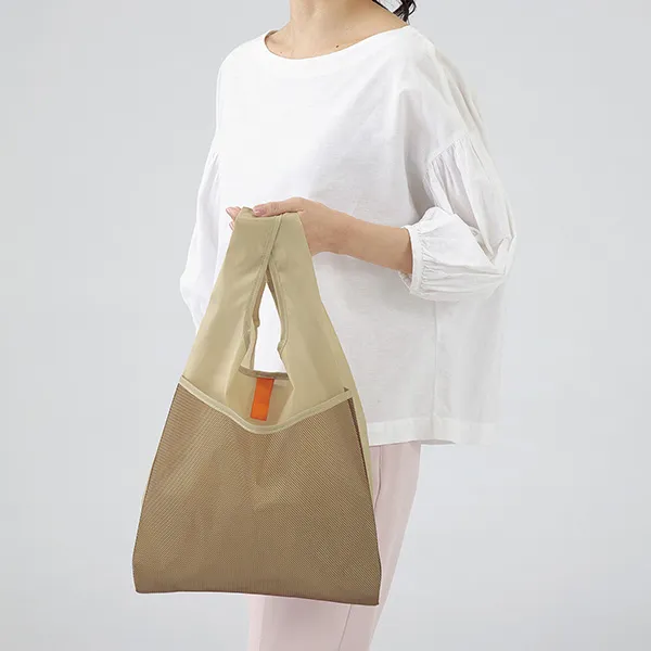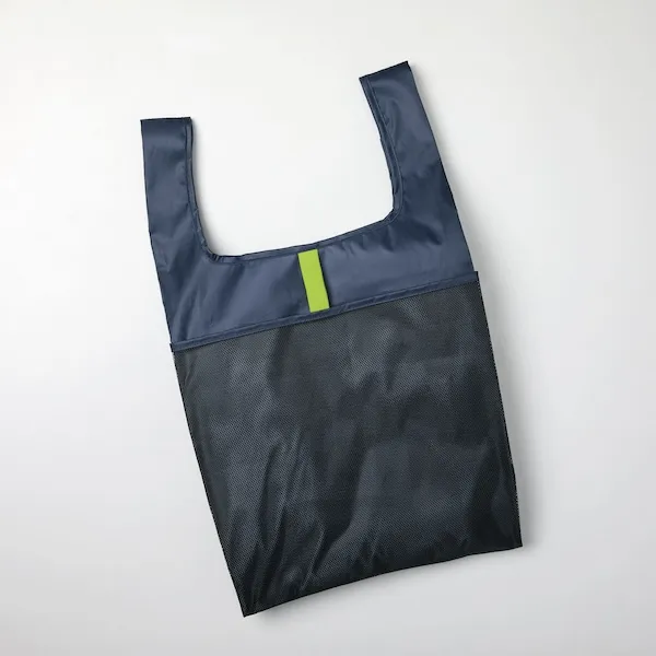 前面のメッシュポケットが特徴のエコバッグです。折りたたんでコンパクトに収納可能です。シンプルなエコバッグですがゴムがアクセントカラーに!